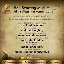 Jadi kita juga harus memenuhi hak saudara kita antara lain jika bertemu ucapkan salam, jika di undang penuhilah, jika dinasehati maka kita menasehatinya juga, jika bersin doakanlah, jika sakit kunjungilah, dan jika meninggal maka antarkanlah ke kuburannya.